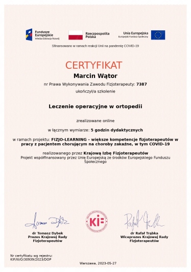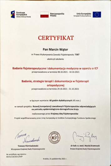 Głównym obszarem mojej działalności jest rehabilitacja ortopedyczna dorosłych oraz dzieci od 8 roku życia.