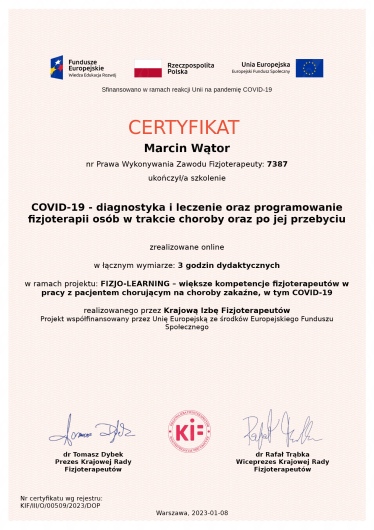 Jestem magistrem fizjoterapii z wieloletnią praktyką w zawodzie.